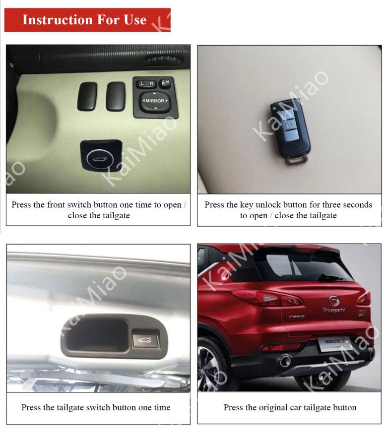 5. Whether the remote control and the front switch button can open or close the tailgate.