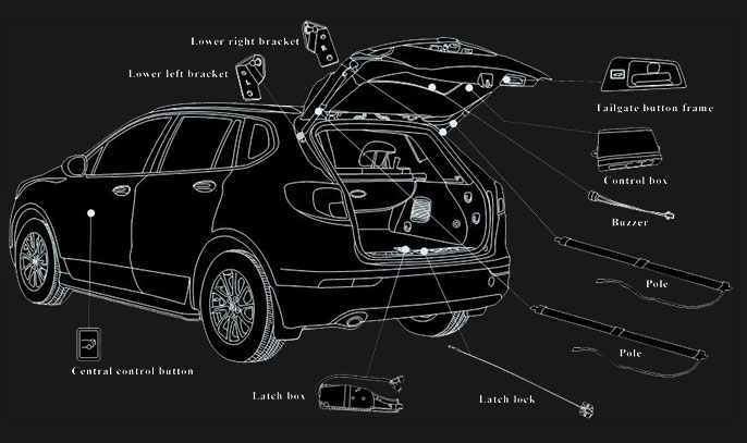 | Multi-style Control | A light touch on the button on tailgate,closes as you require.When you are in driver’s seat,press the button tocontrol tailgate easily.And we also offer foot sensor as an option,When you have no free hands to switch the tailgate, you can open it with your foot. |